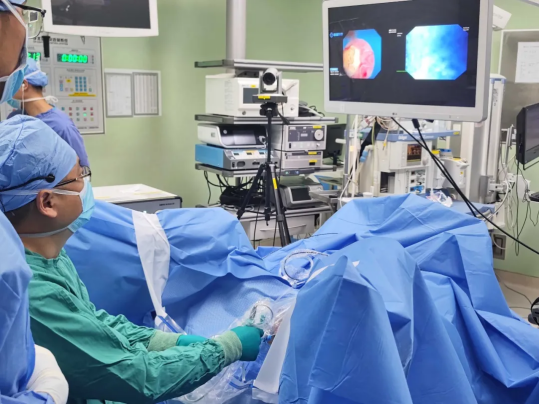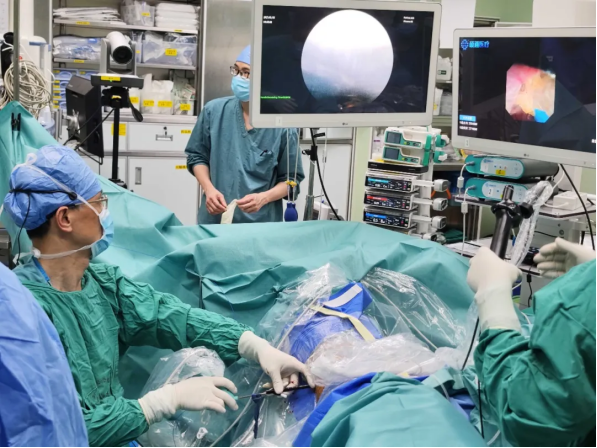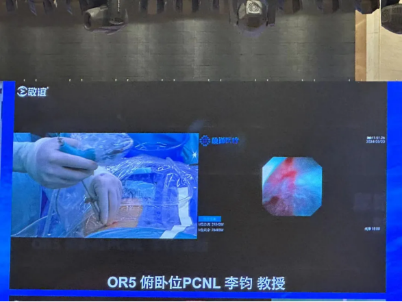 Professor Li Jun demonstrated lithotripsy surgery in the prone position through Shuotong electronic nephroscopy in the surgical demonstration session of the conference.