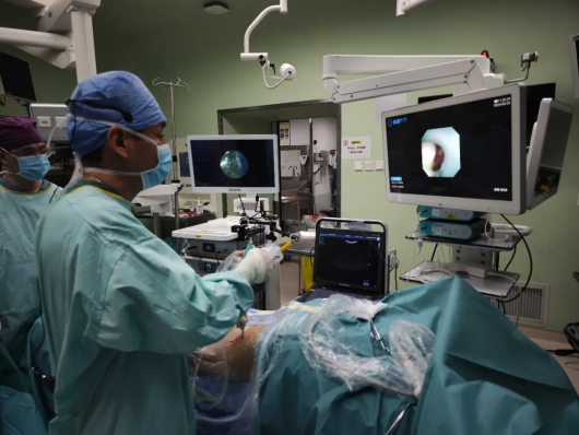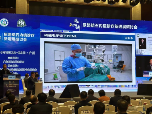 Professor Li Jun demonstrated lithotripsy surgery in the prone position through Shuotong electronic nephroscopy in the surgical demonstration session of the conference.