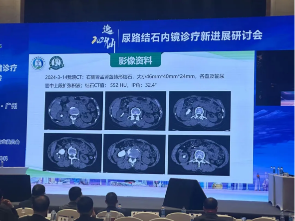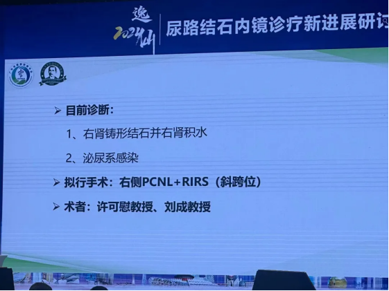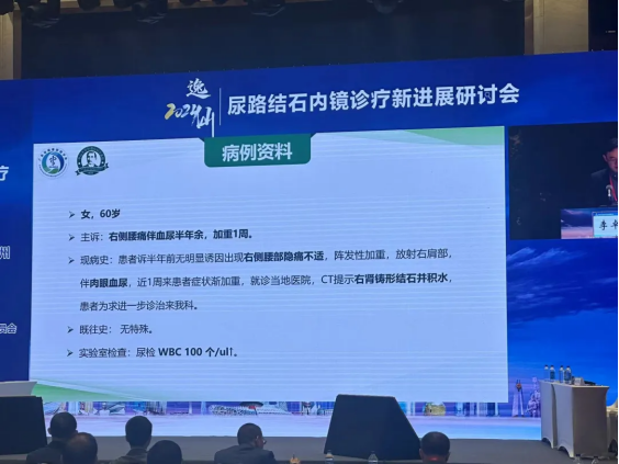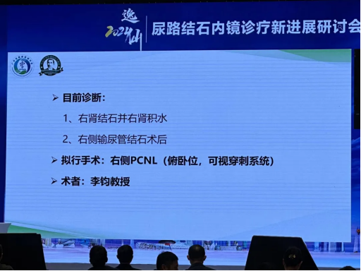 Professor Xu Wei demonstrated the lithotripsy surgery of Shuotong electronic percutaneous nephroloscopy crossbody position combined with soft microscope in the surgical demonstration session of the conference.